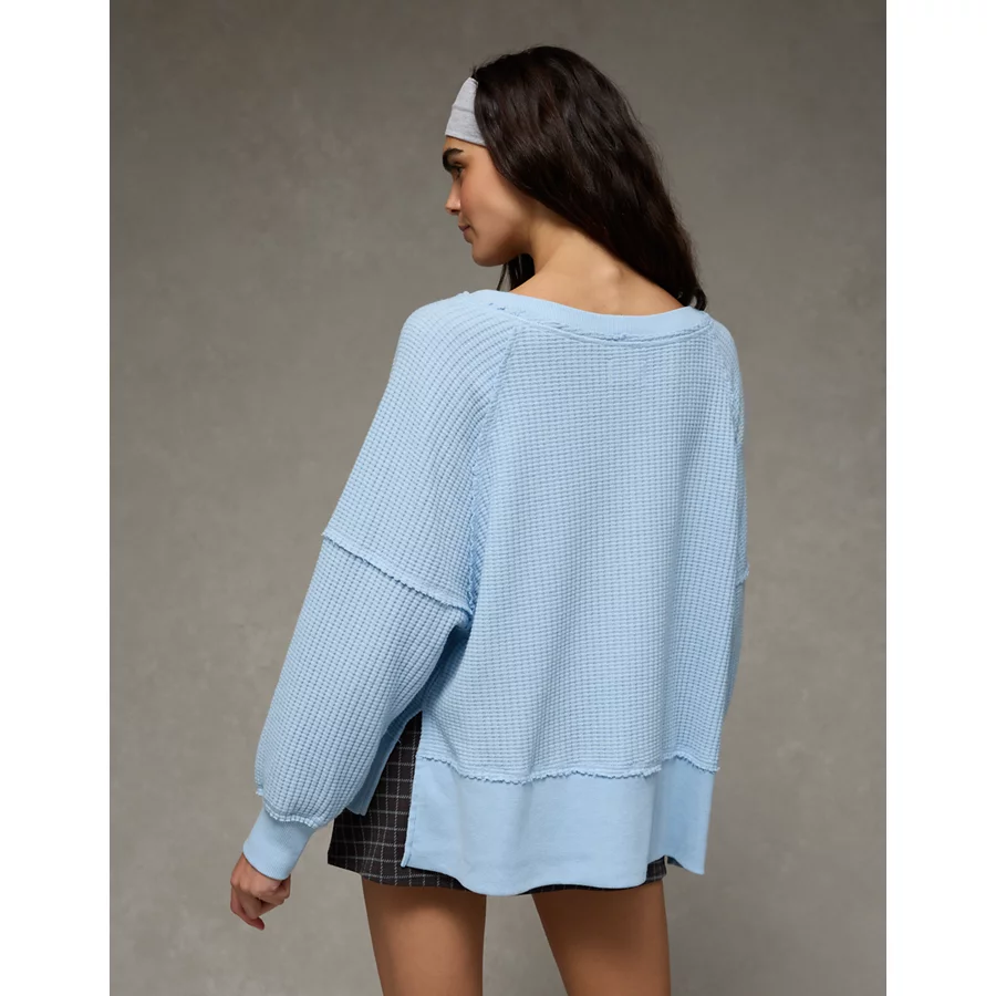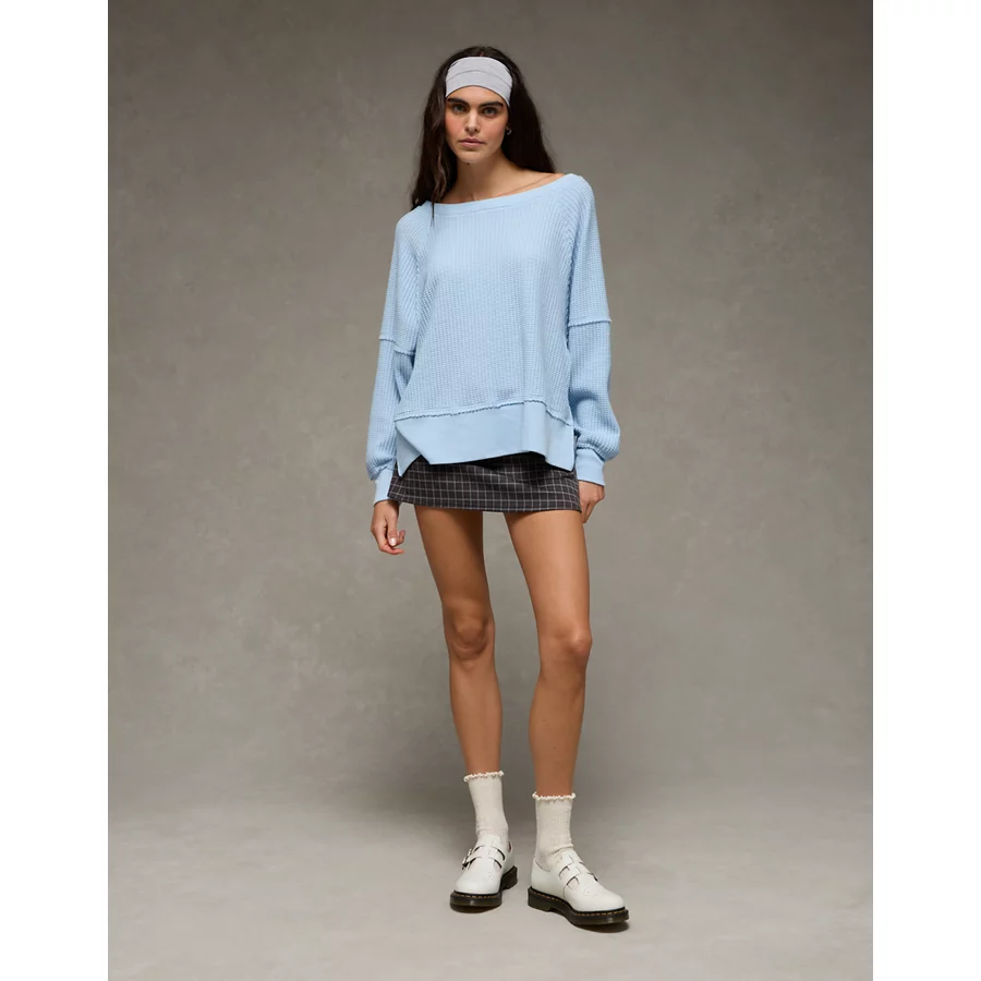 AE Big Hug Off-The-Shoulder Waffle Sweatshirt – Skylight