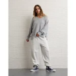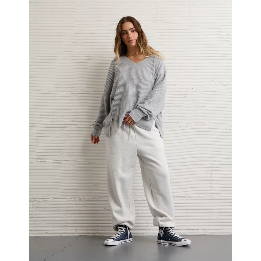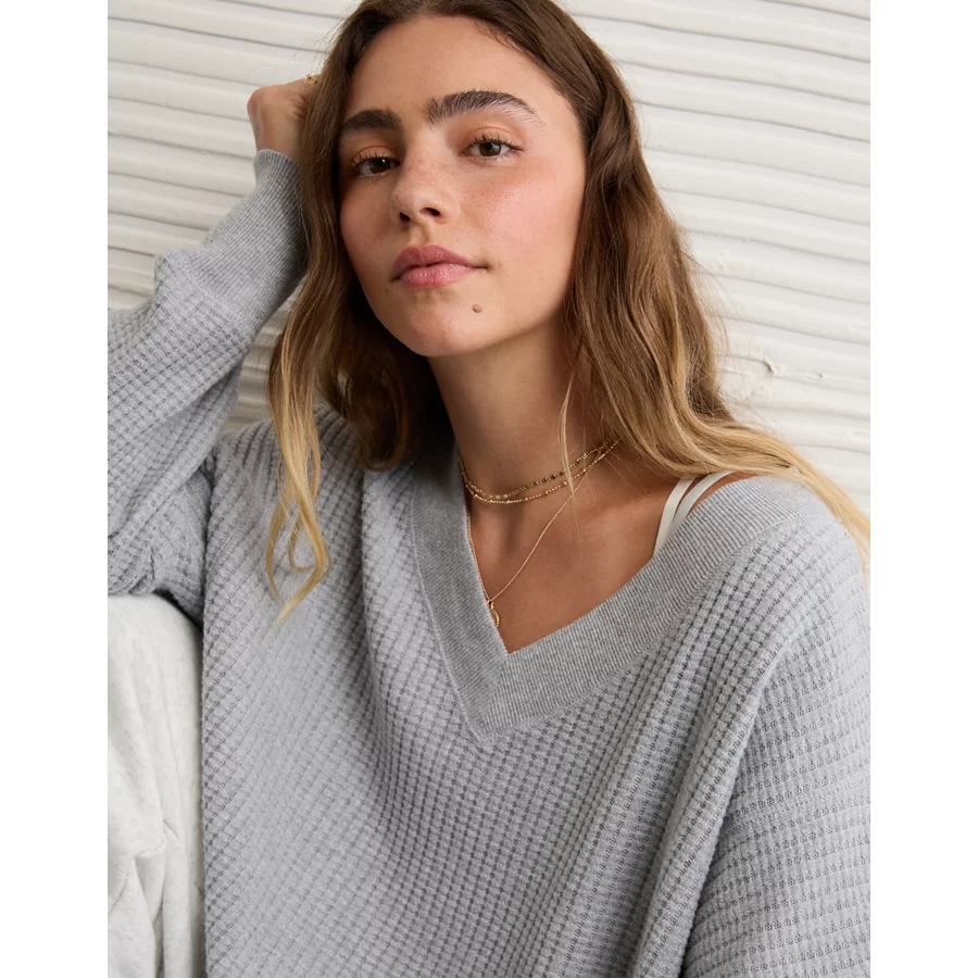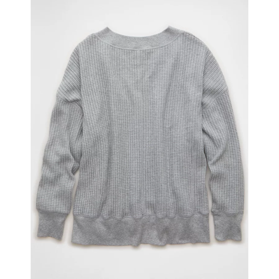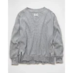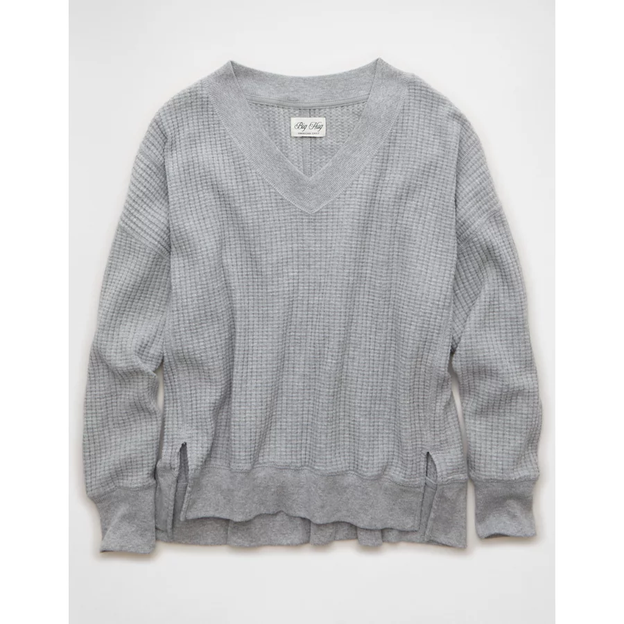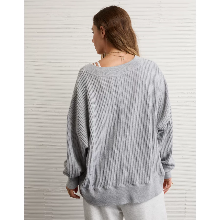 AE Big Hug V-Neck Waffle Sweatshirt – Light Heather Gray