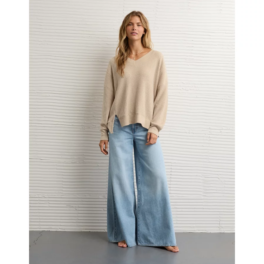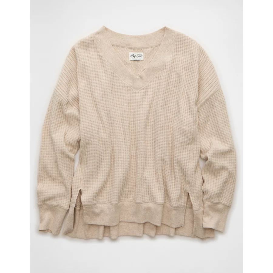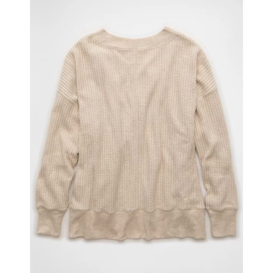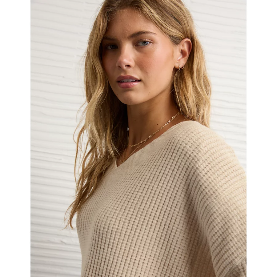 AE Big Hug V-Neck Waffle Sweatshirt – Oatmeal Heather