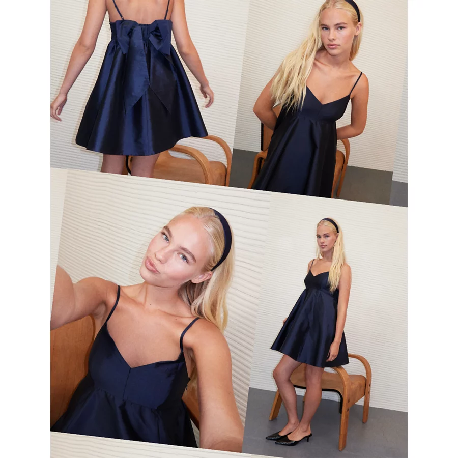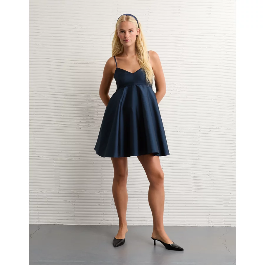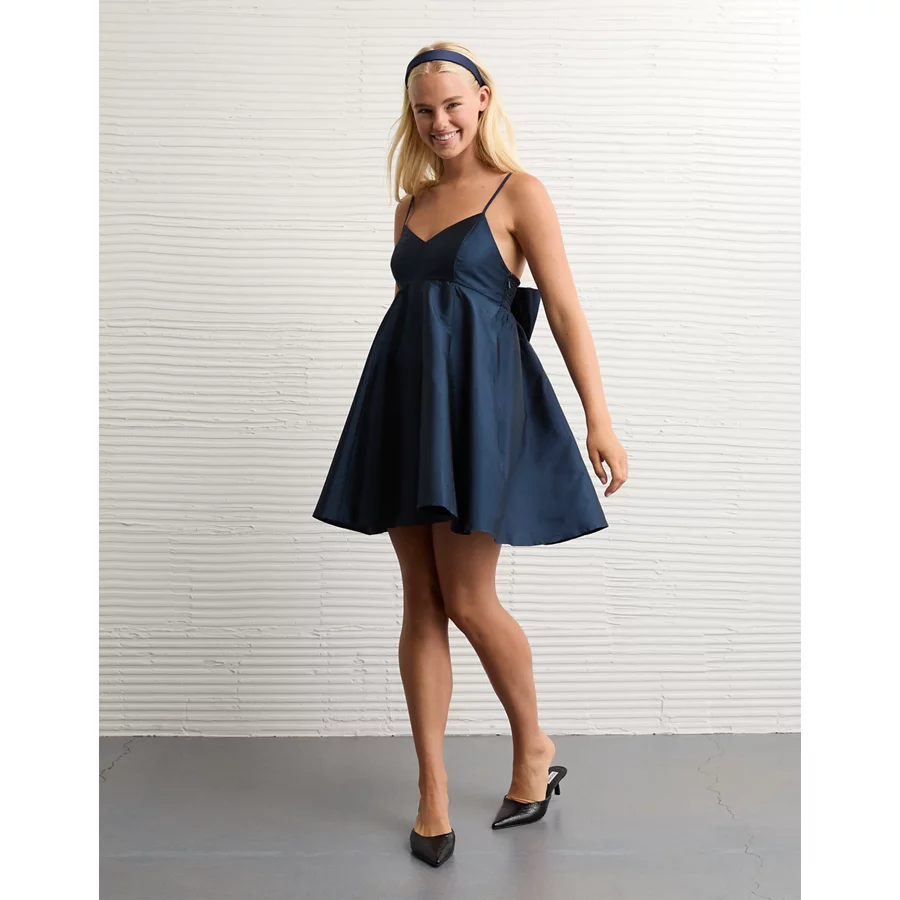 AE Bow Back Babydoll Mini Dress – Dark Blue