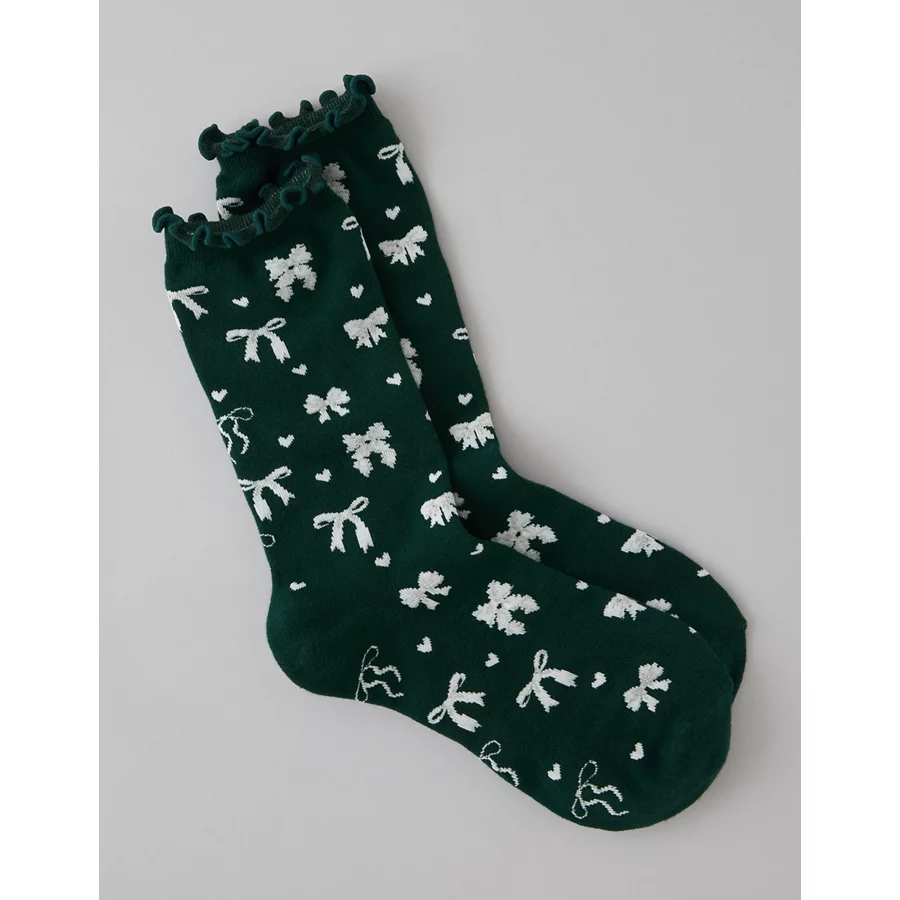 AE Bows Ruffle Crew Socks – Deep Forest