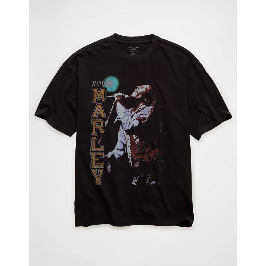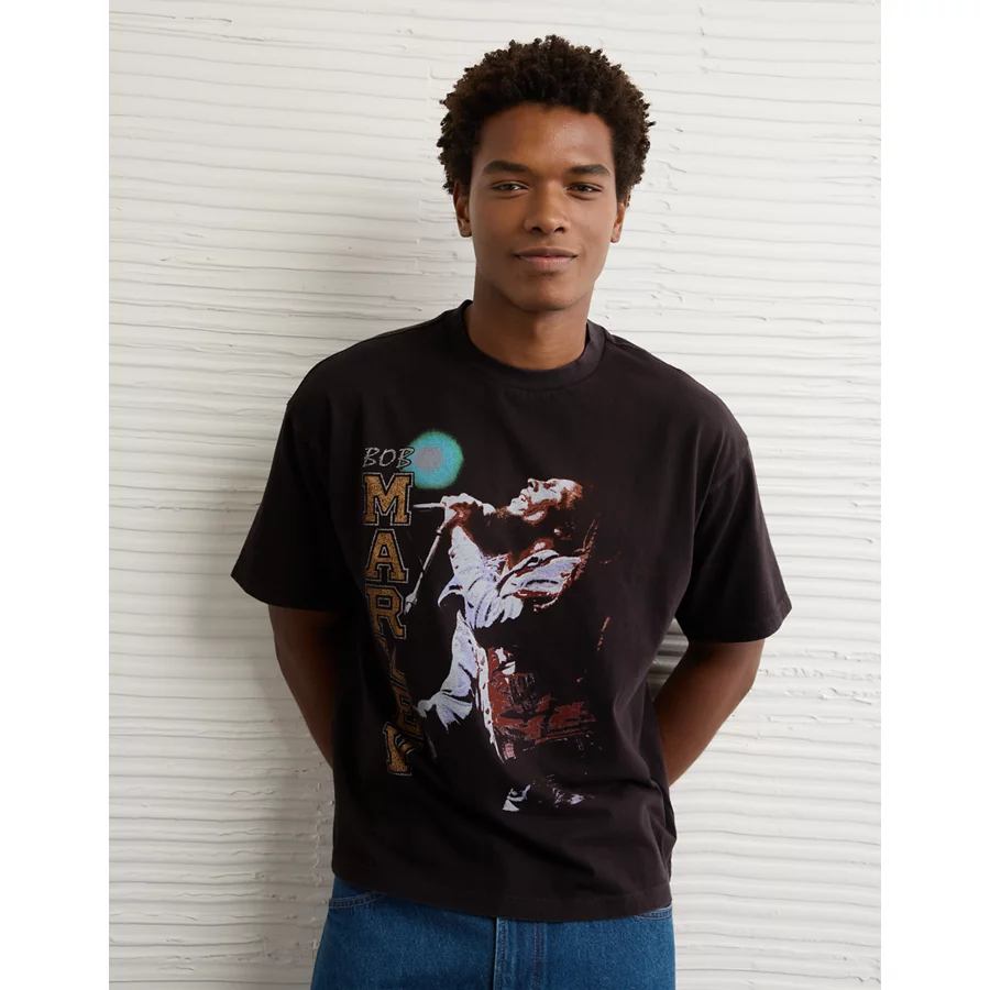AE Boxy Bob Marley Graphic T-Shirt – Faded Black