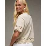 AE 3-Piece Pointelle Plush Cardigan Pajama Set – White