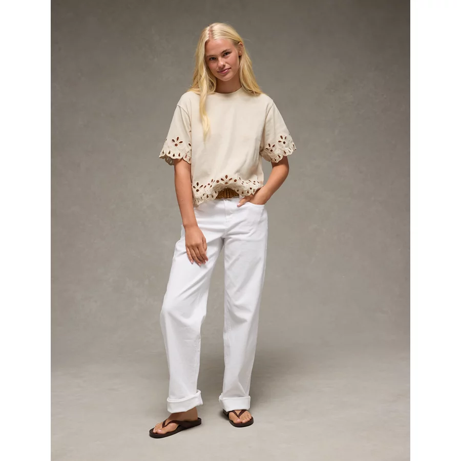 AE 11″ Dreamy Drape Stretch High-Waisted Jort – Light Tinted Wash