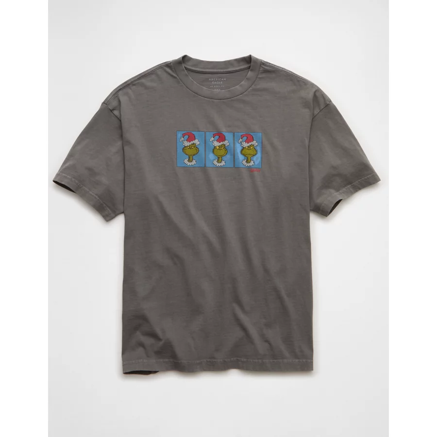 AE Boxy Grinch Graphic T-Shirt – Grey