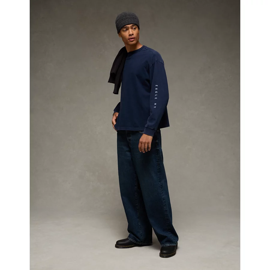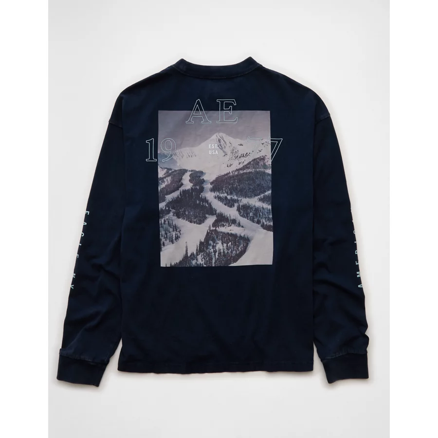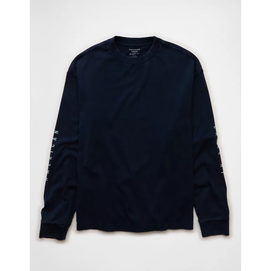 AE Boxy Long Sleeve Destination Graphic T-Shirt – Navy