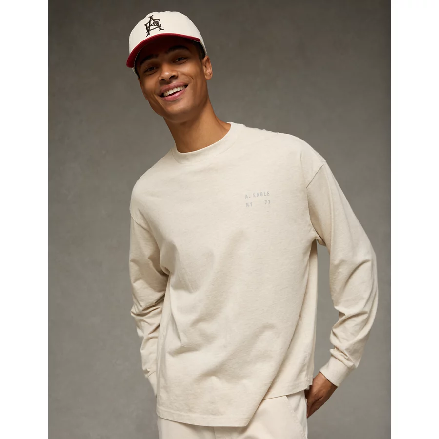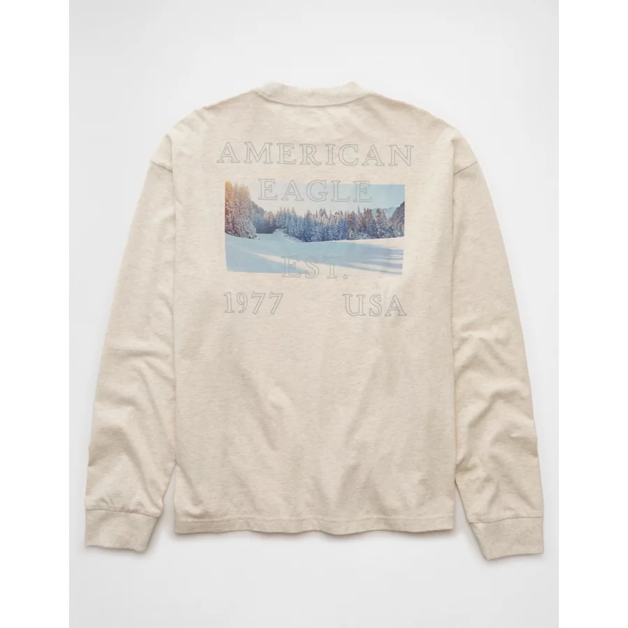 AE Boxy Long Sleeve Destination Graphic T-Shirt – Oatmeal Heather