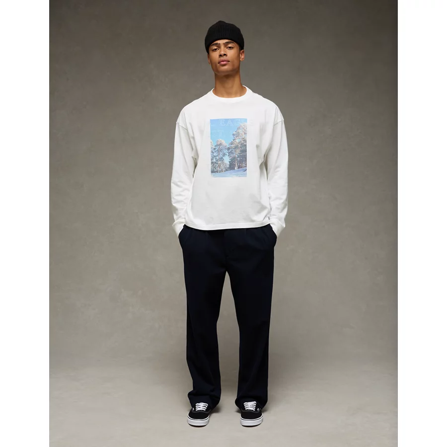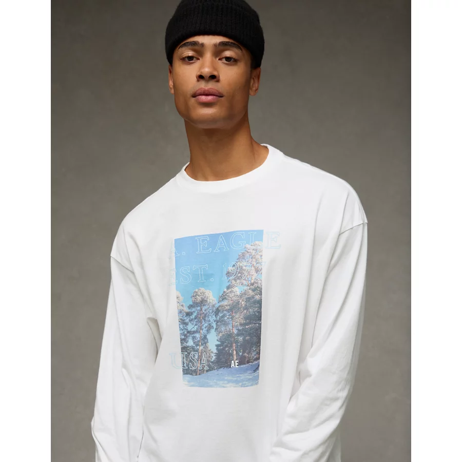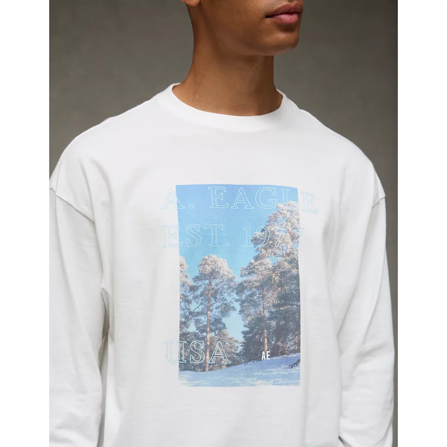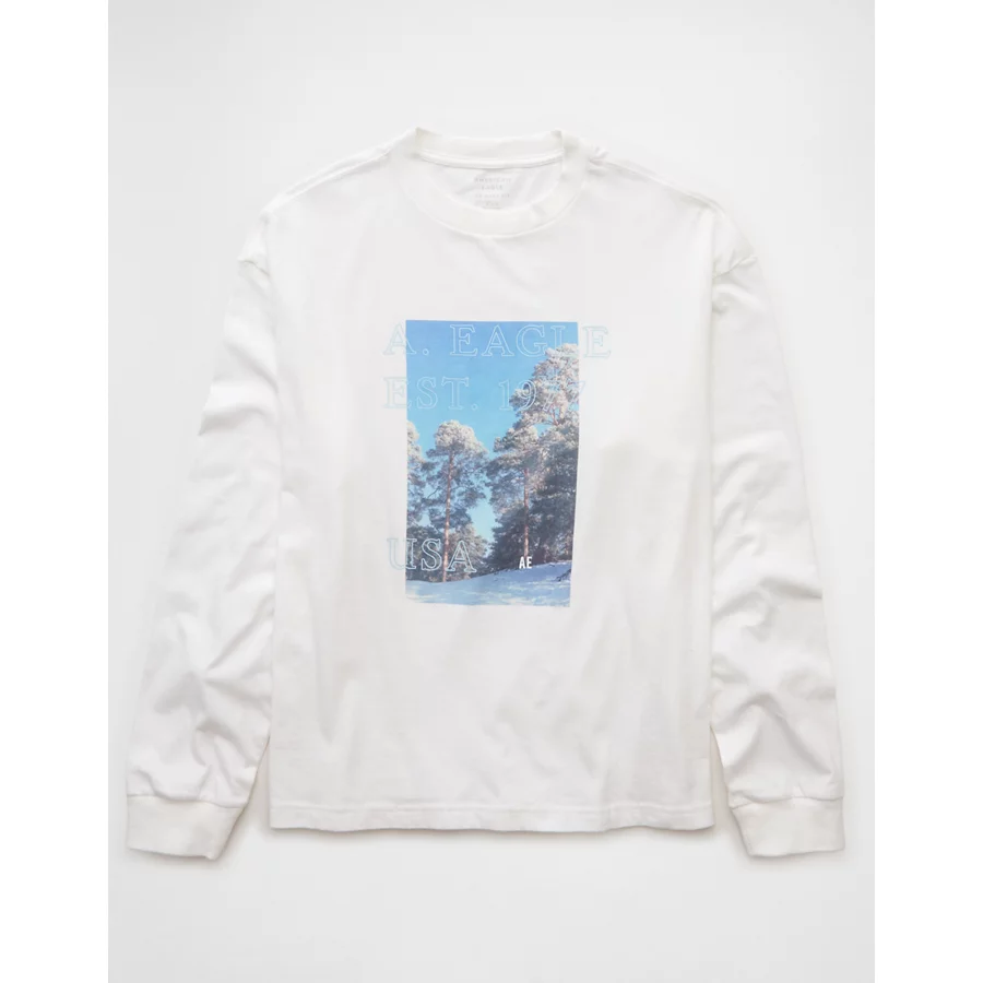 AE Boxy Long Sleeve Destination Graphic T-Shirt – White