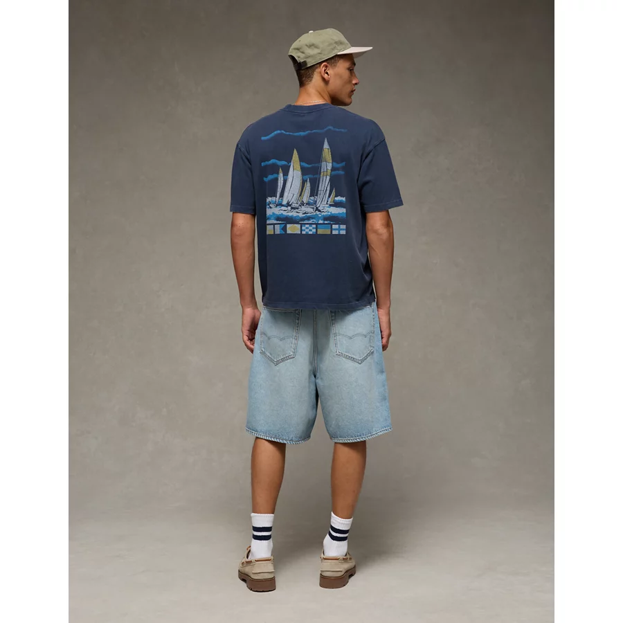 AE Boxy Nautical Graphic T-Shirt - Soft Blue