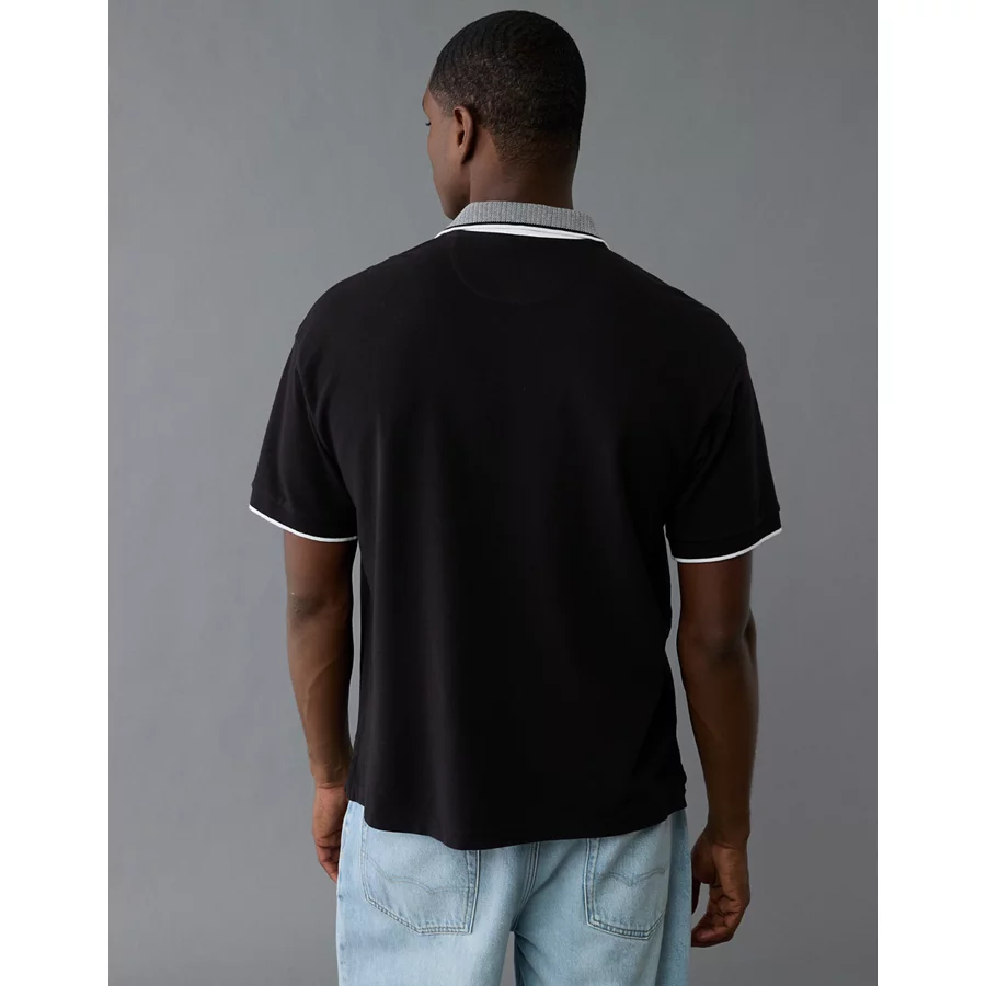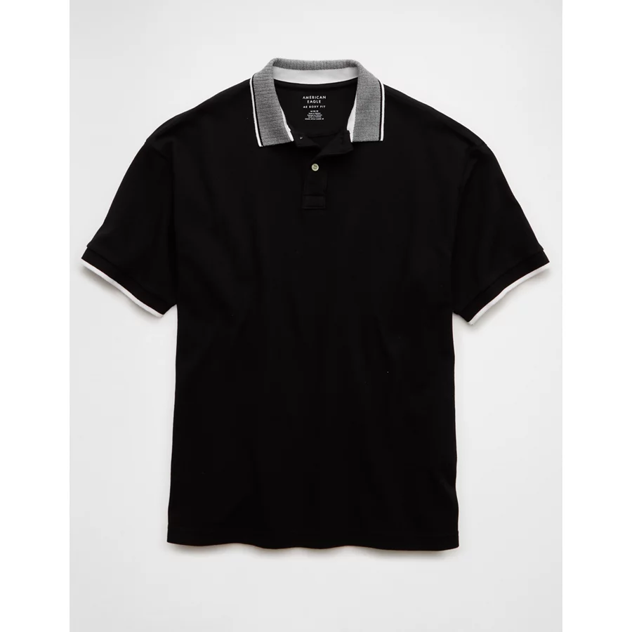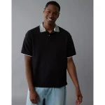 AE Boxy Stretch Pique Polo Shirt – Black