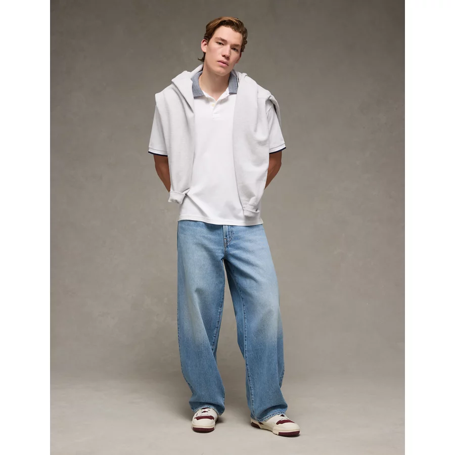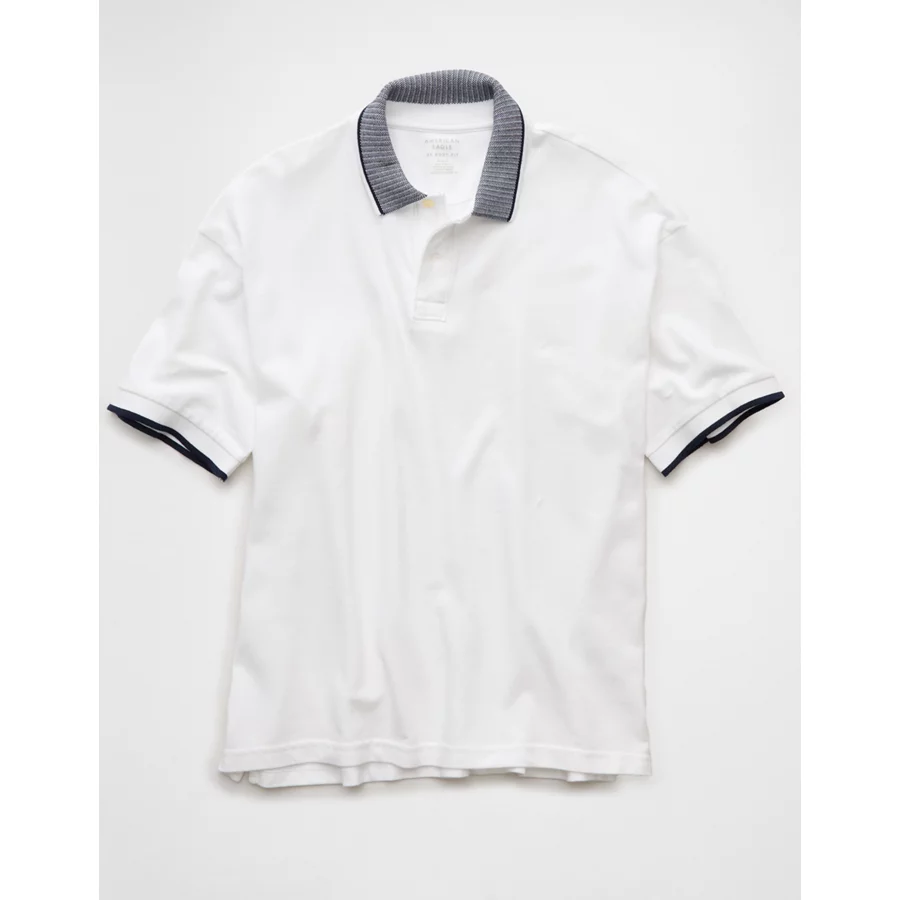AE Boxy Stretch Pique Polo Shirt – White Washed