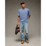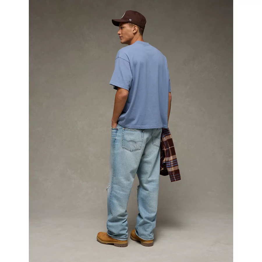 AE Boxy Sueded Jersey T-Shirt – Light Blue