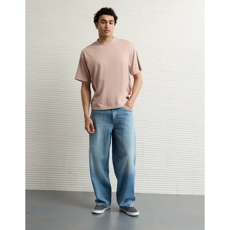AE Boxy Sueded Jersey T-Shirt - Light Blue