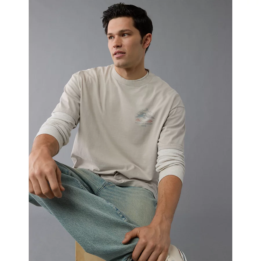 AE Boxy The Rolling Stones Graphic T-Shirt – Shell Gray