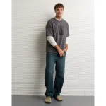 AE Boxy Washed Thermal Henley Shirt - Smoked Gray