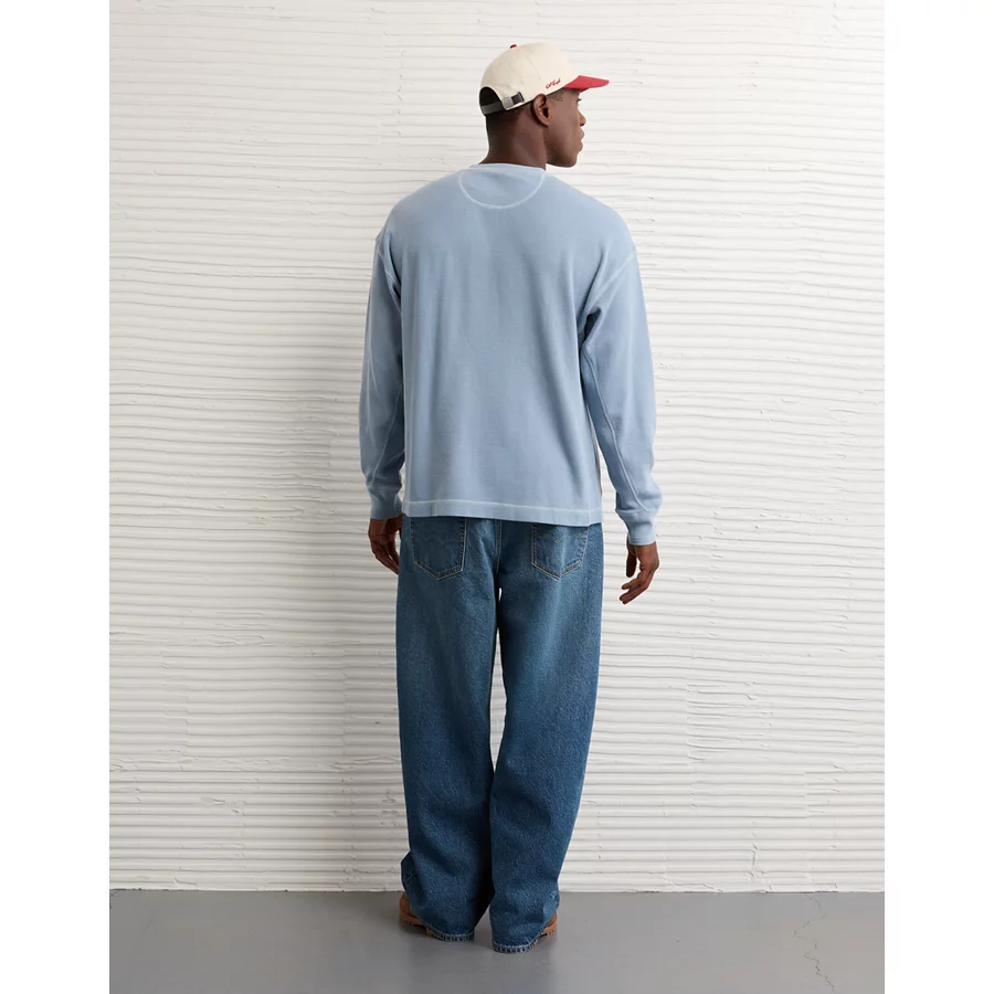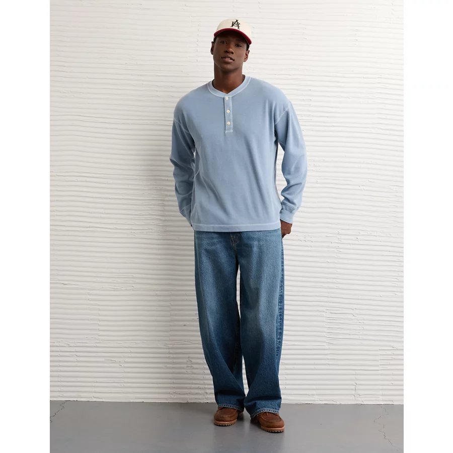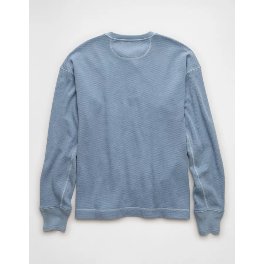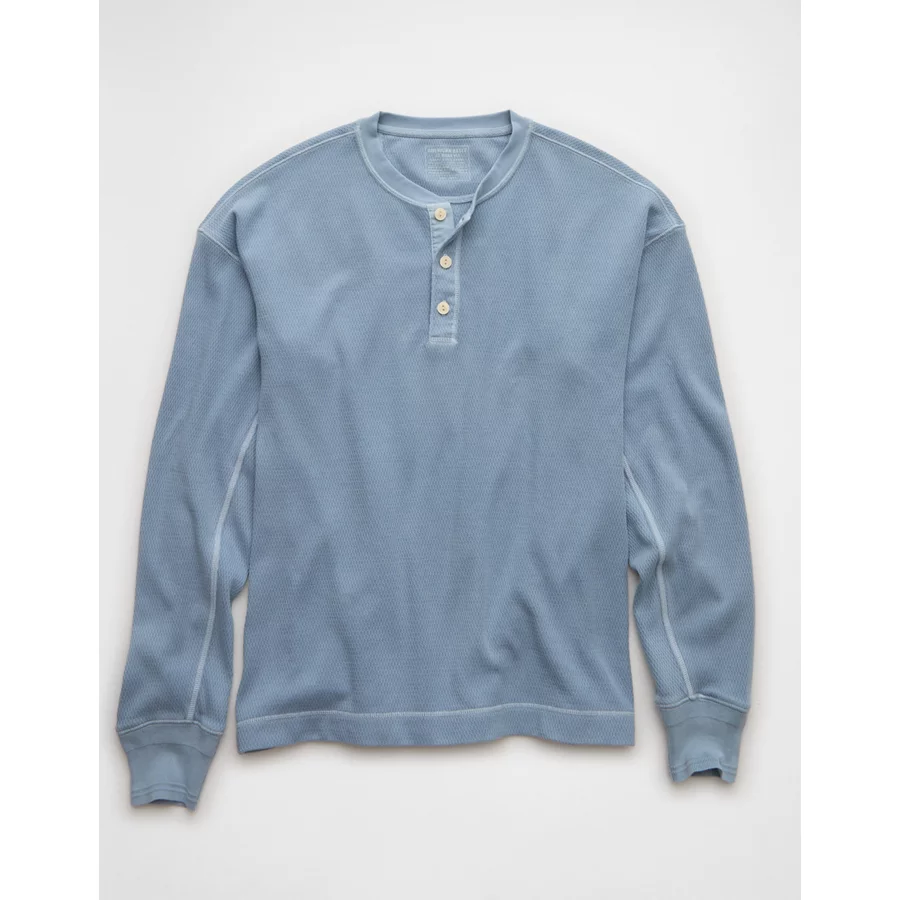 AE Boxy Washed Thermal Henley Shirt – Soft Blue