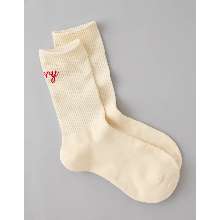 AE Bright & Merry Crew Socks – Cream