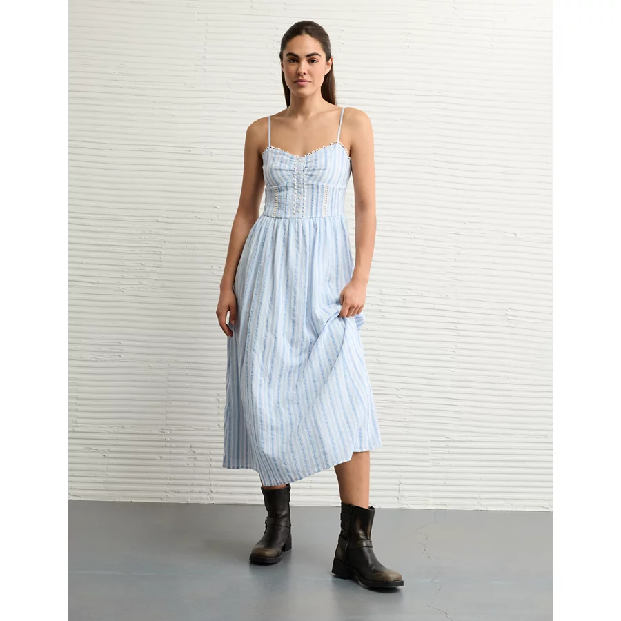 AE Catie Corset Column Midi Dress - Dark Wash