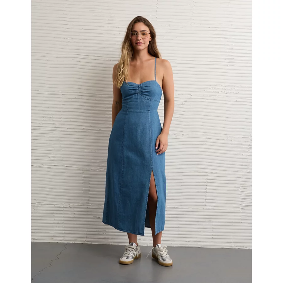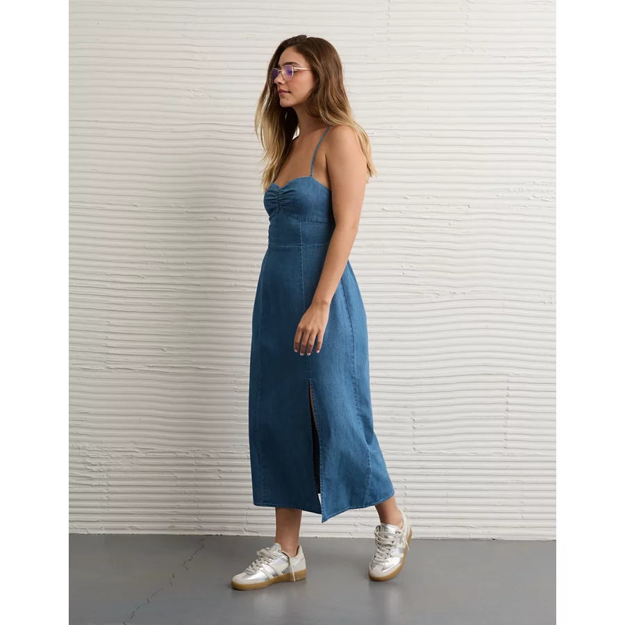 AE Catie Corset Column Midi Dress – Dark Wash