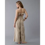 AE Asymmetrical Ruffle Maxi Slip Dress – Light Blue