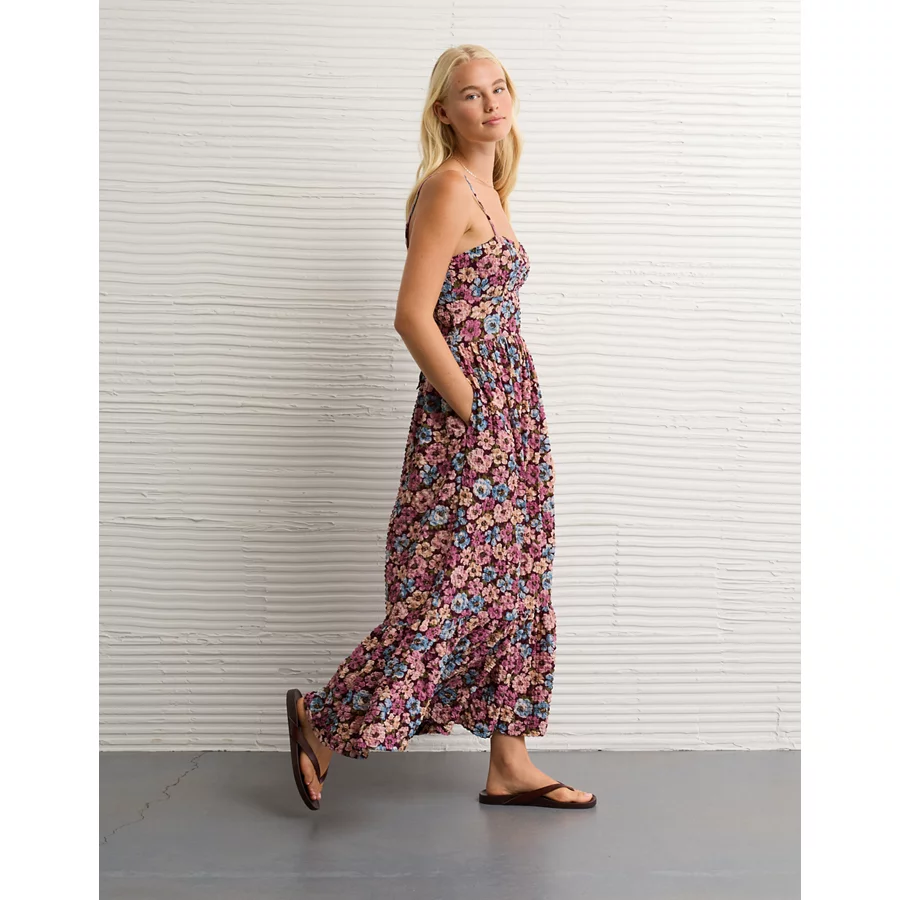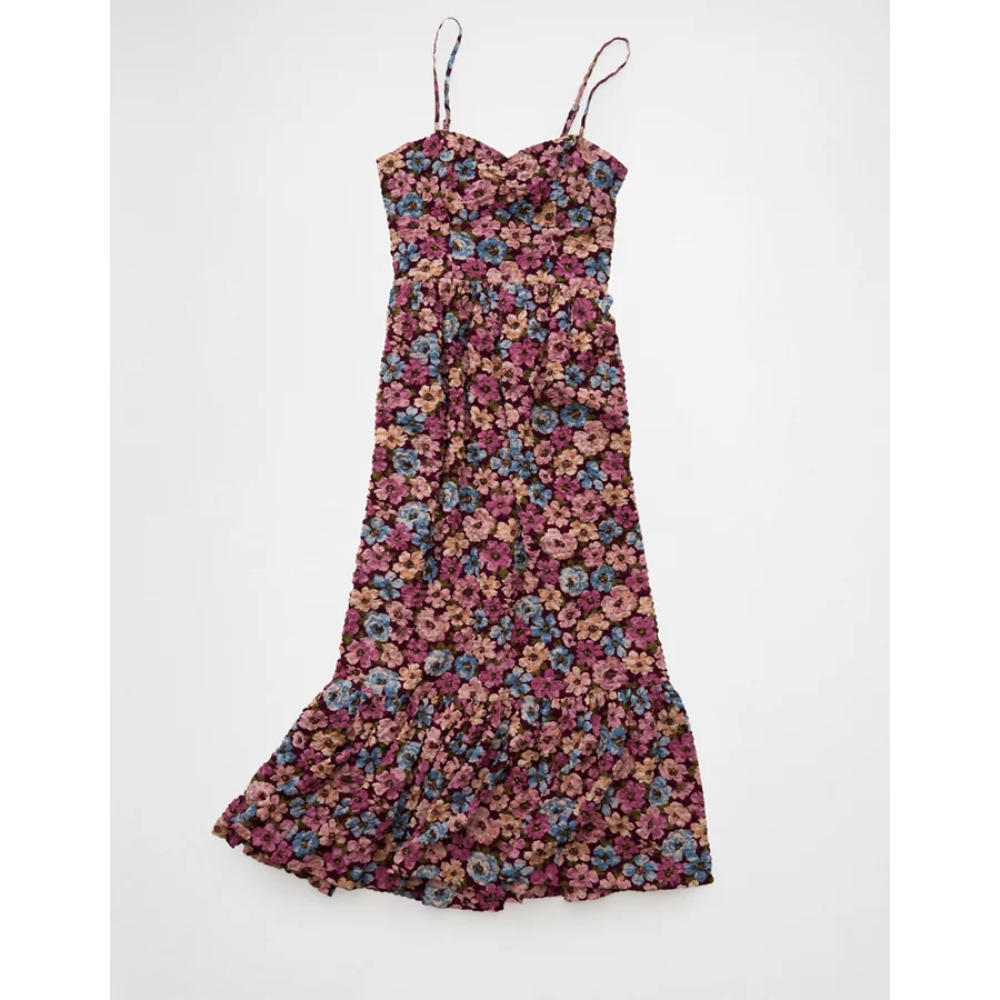 AE Catie Corset Smocked Floral Midi Dress - Floral