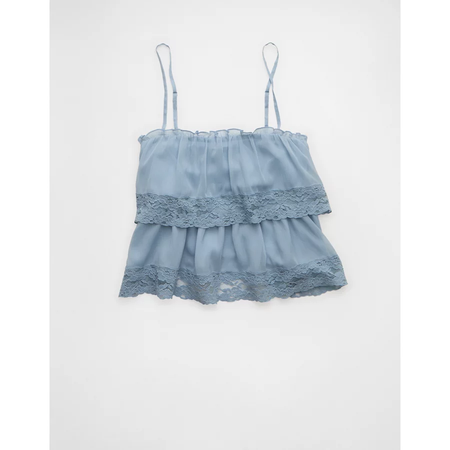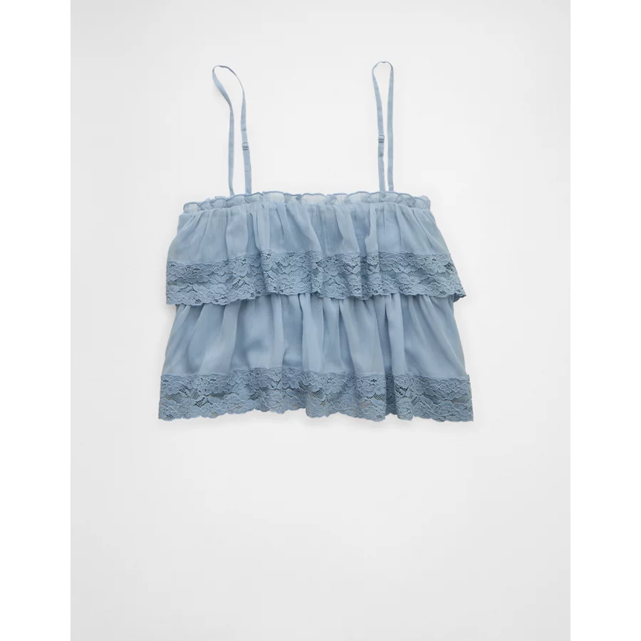 AE Chiffon Tiered Ruffle Tank Top – Light Blue