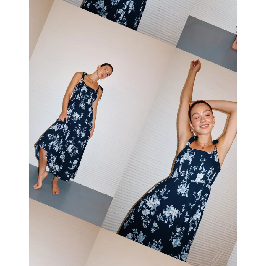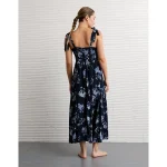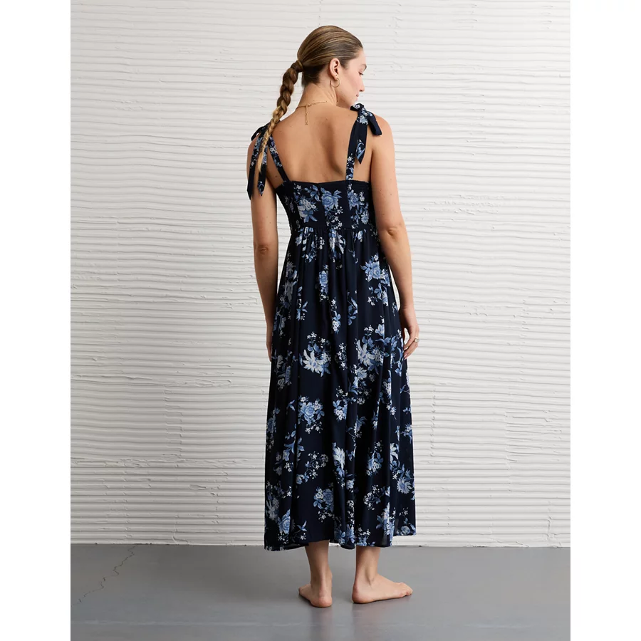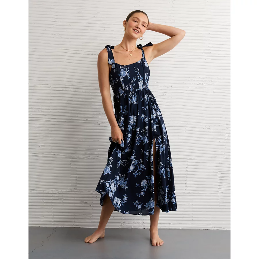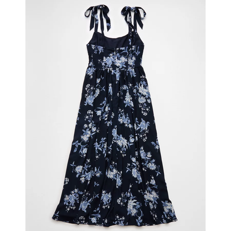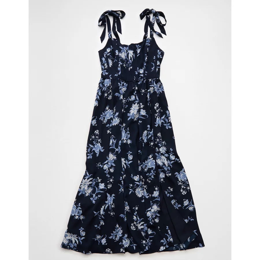 AE Corset Tie Strap Floral Midi Dress – Navy
