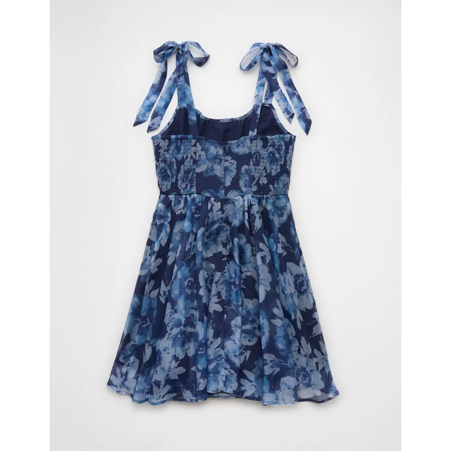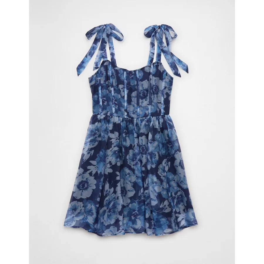 AE Corset Tie Strap Floral Mini Dress – Blue