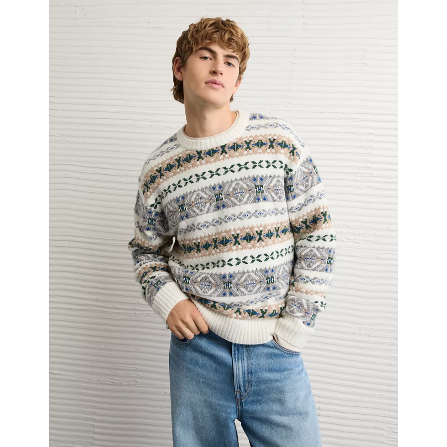 AE Cozy Cabin Fairisle Sweater – Frosty Cream