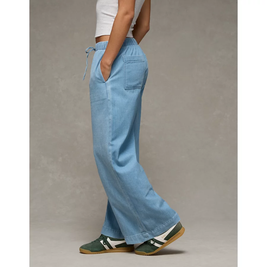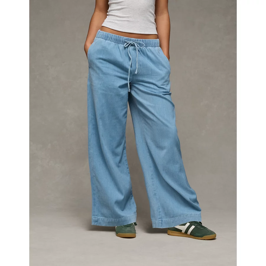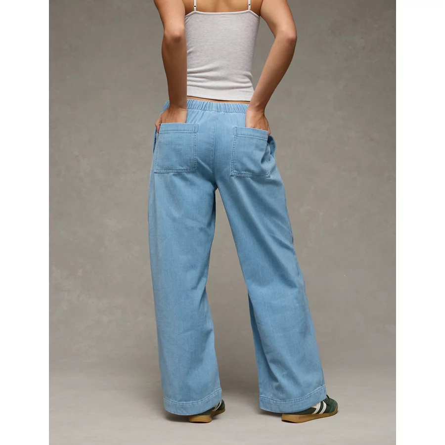 AE Cozy Dreamy Drape Low-Rise Ultra Wide-Leg Jean – Light Wash