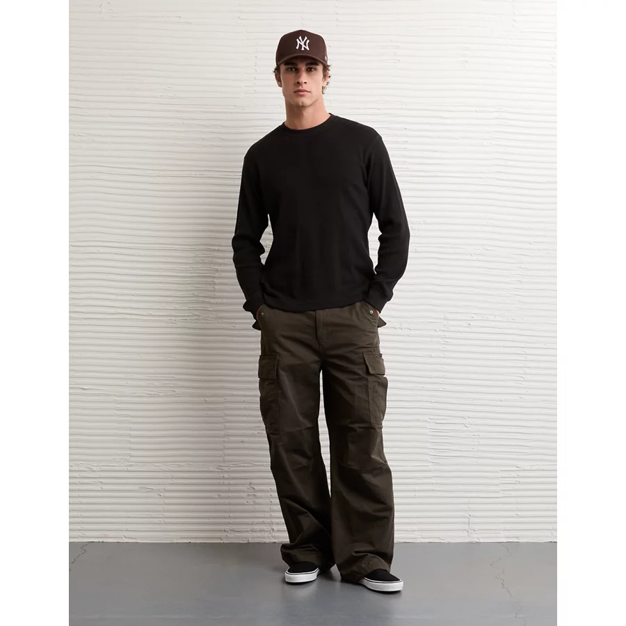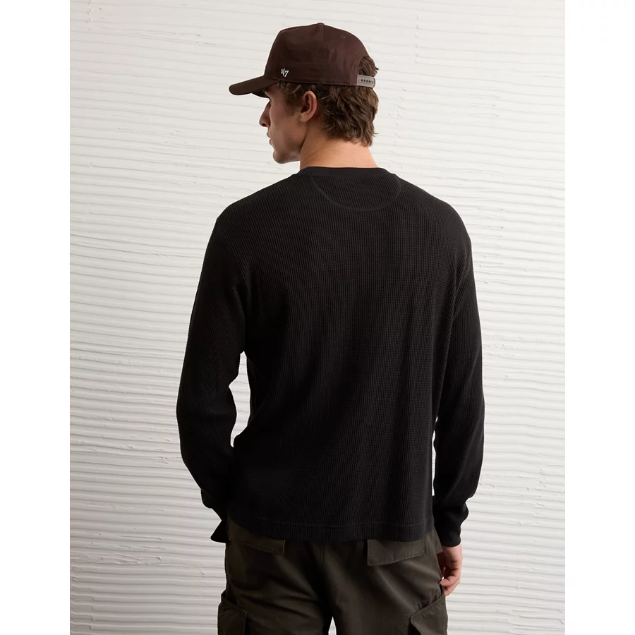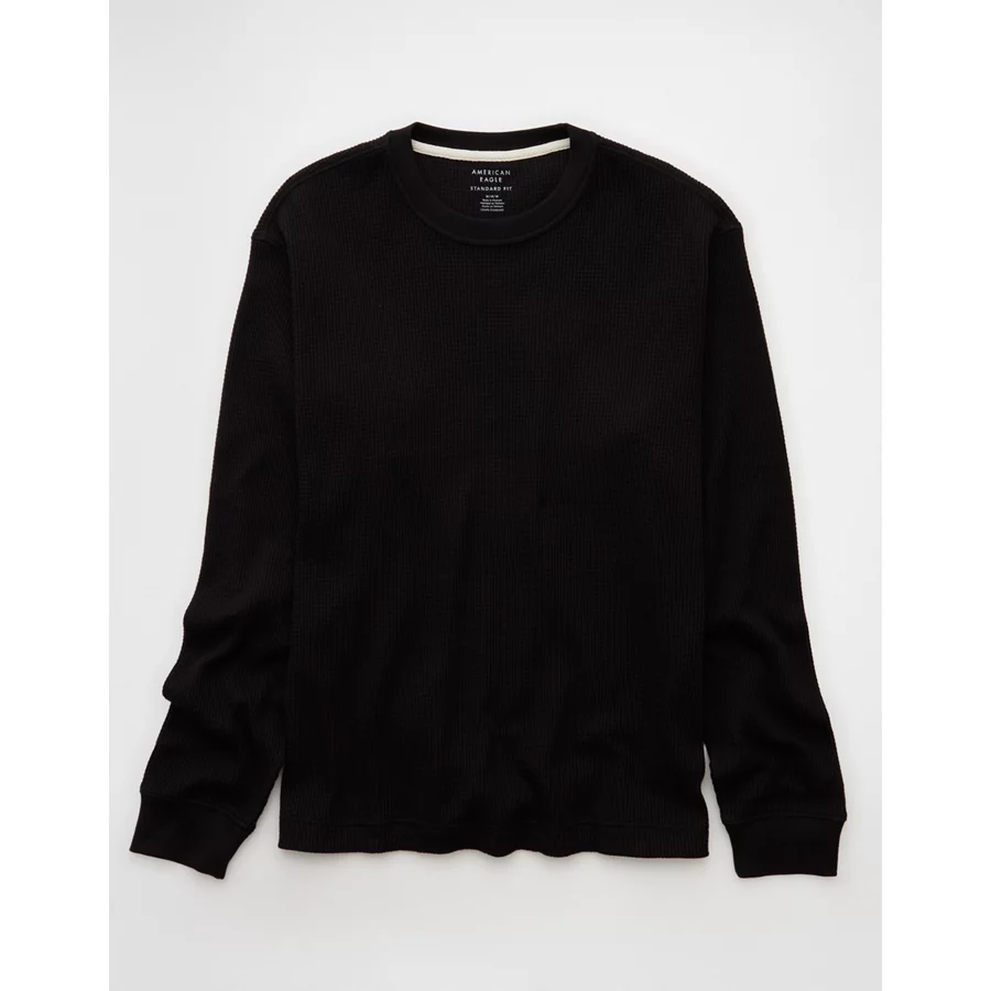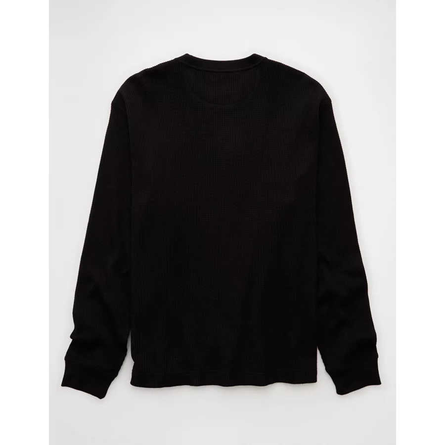 AE Cozy Waffle Thermal T-Shirt – Black