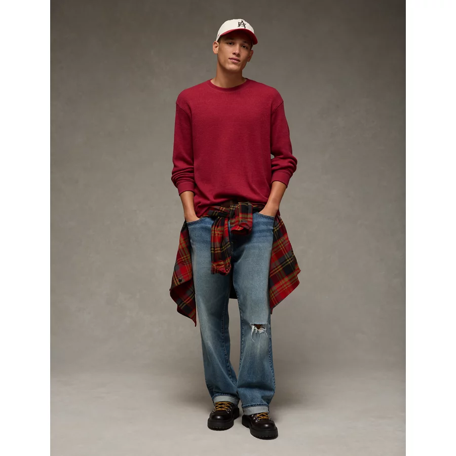 AE Cozy Waffle Thermal T-Shirt – Brick Red