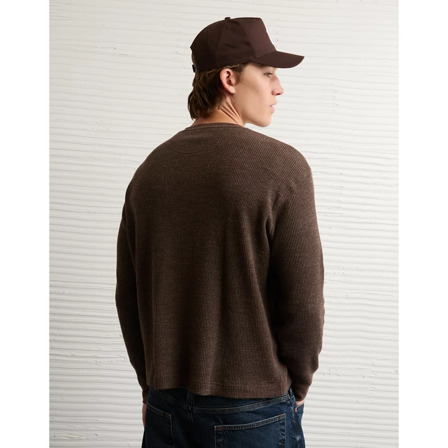 AE Cozy Waffle Thermal T-Shirt – Dark Brown