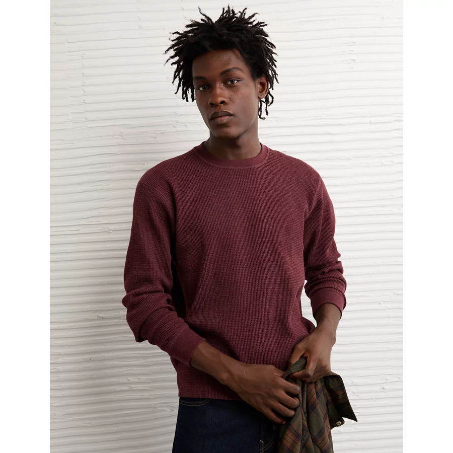 AE Cozy Waffle Thermal T-Shirt – Deep Burgundy
