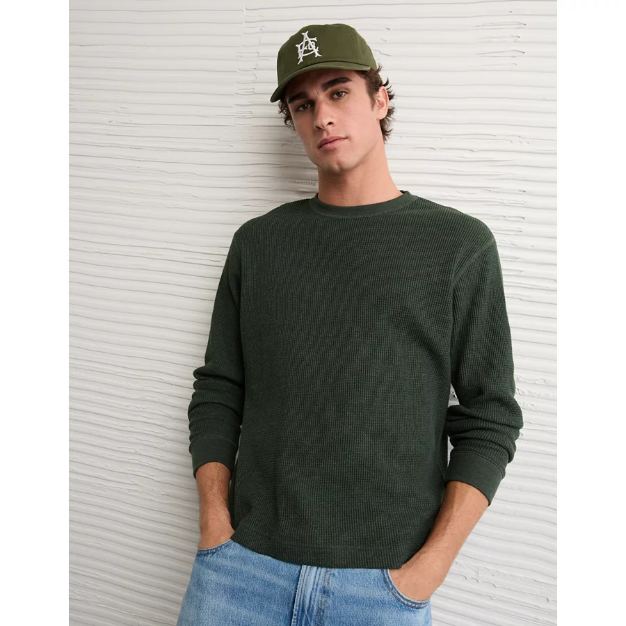 AE Cozy Waffle Thermal T-Shirt – Green Alpine