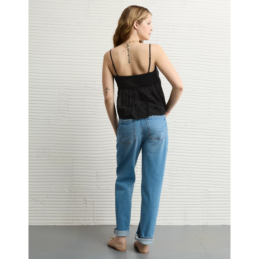 AE 8″ Dreamy Drape Stretch Low-Rise Baggy Jort – Medium Bright Indigo