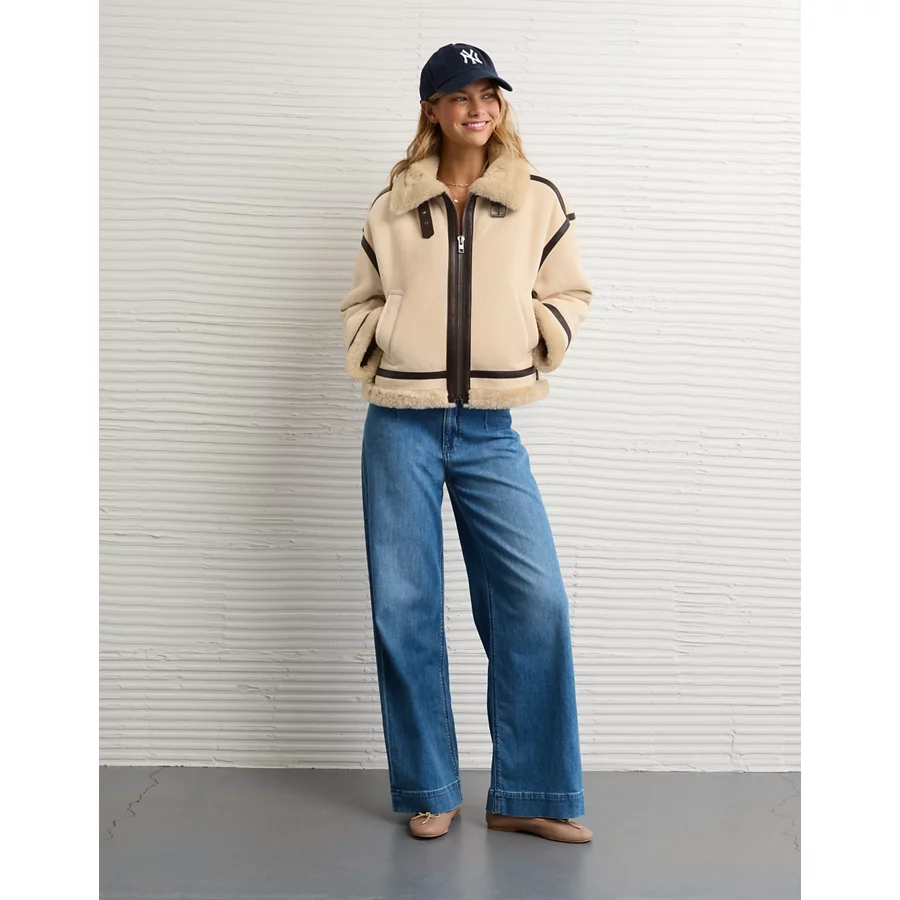 AE Cropped Crochet Sweater Polo Shirt - Wineberry