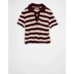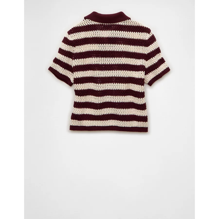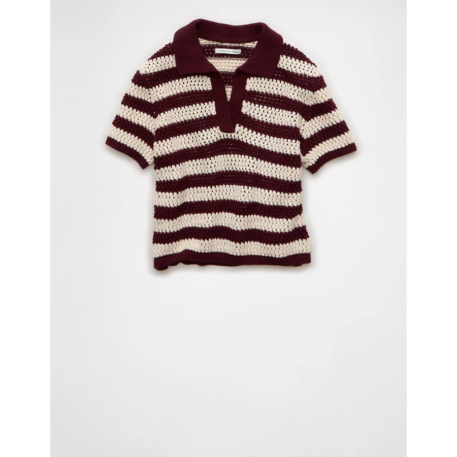 AE Cropped Crochet Sweater Polo Shirt – Wineberry