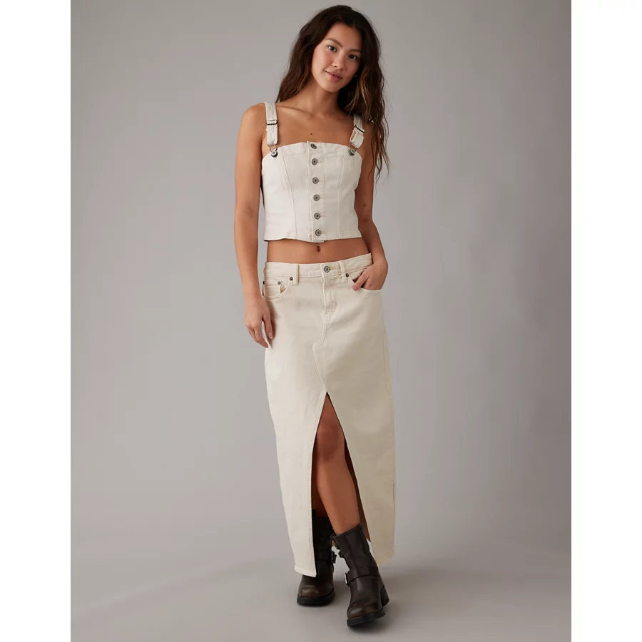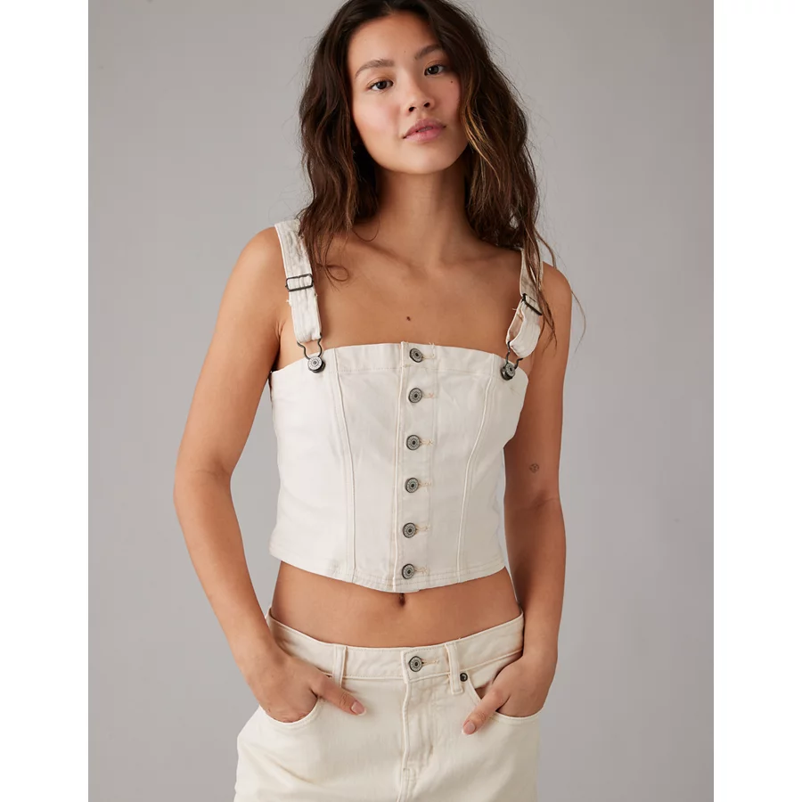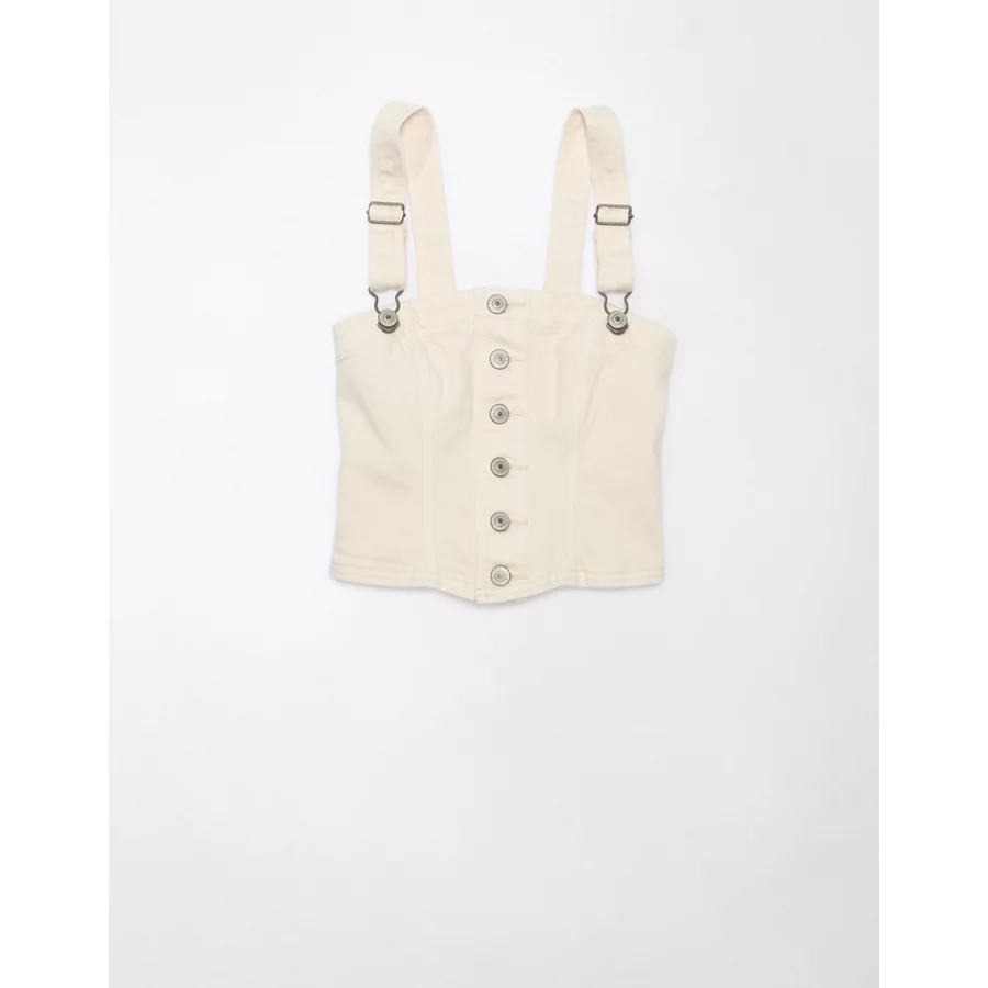 AE Cropped Denim Tank Top – Cream