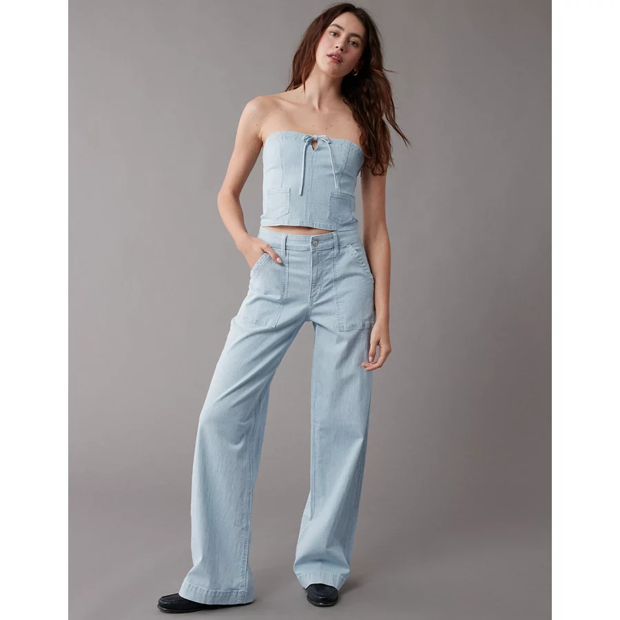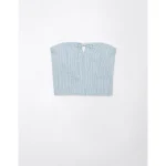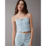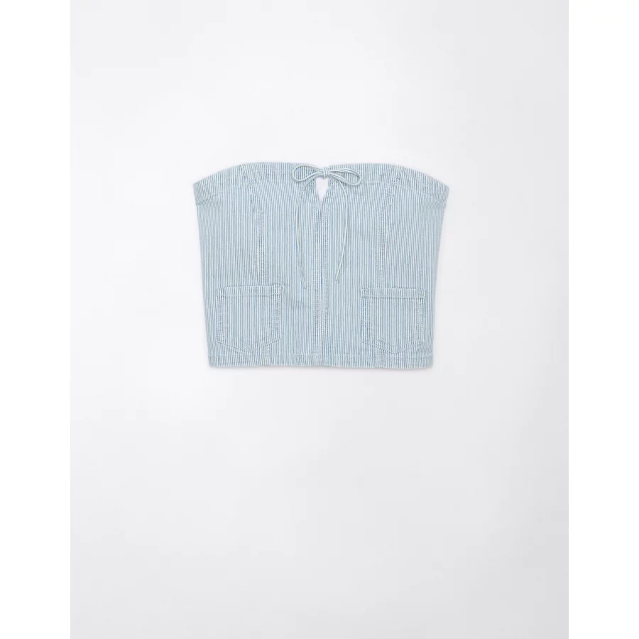 AE Cropped Railroad Denim Top – Light Blue