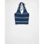AE Cropped Striped Sweater Halter Top – Navy