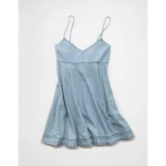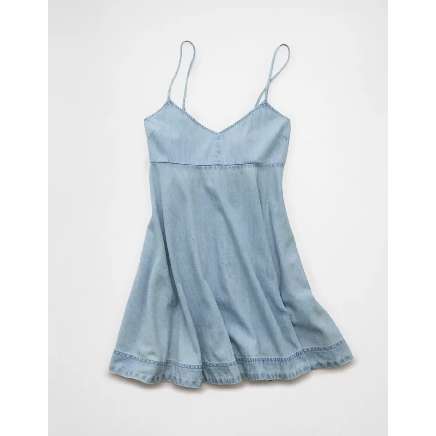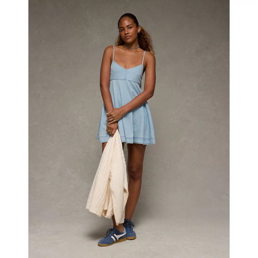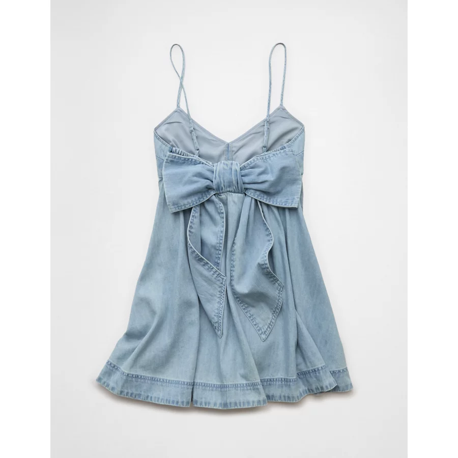 AE Denim Bow Back Babydoll Mini Dress – Light Wash