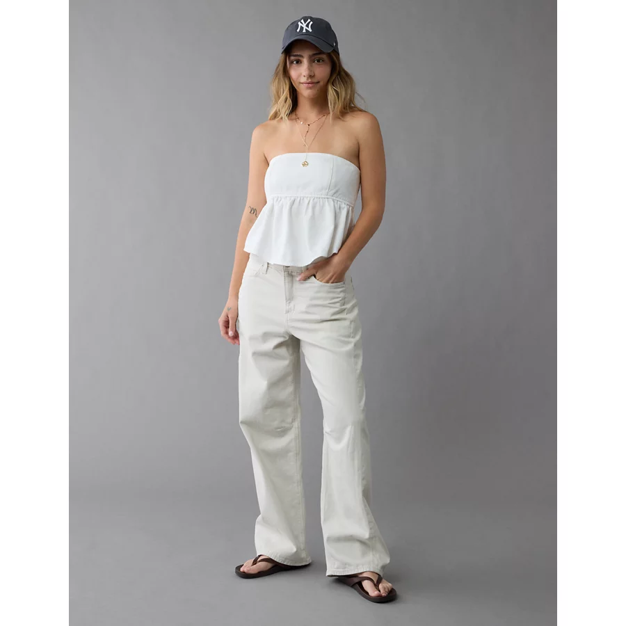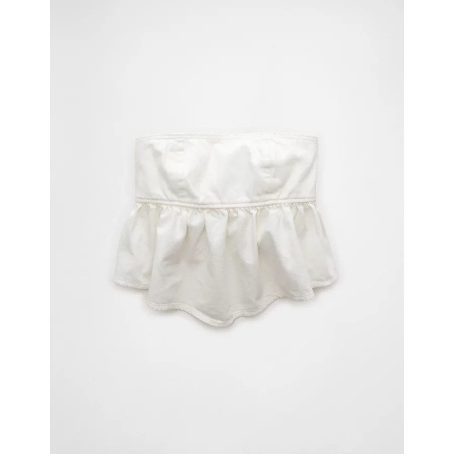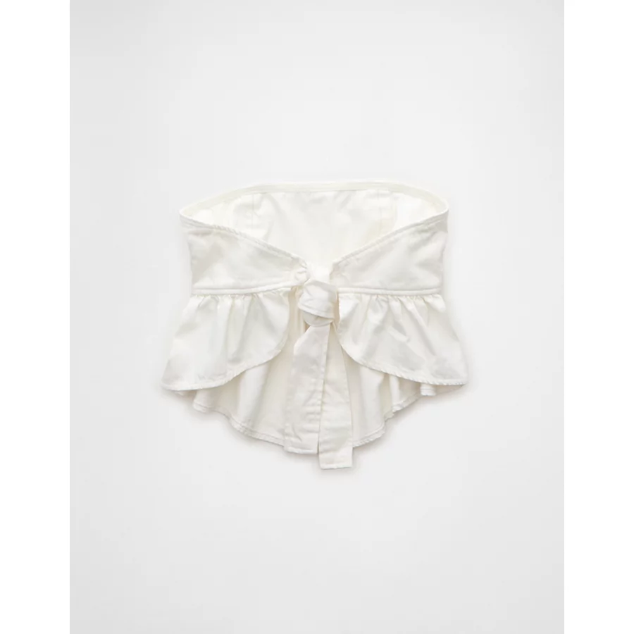 AE Denim Strapless Tie Back Babydoll Top – White
