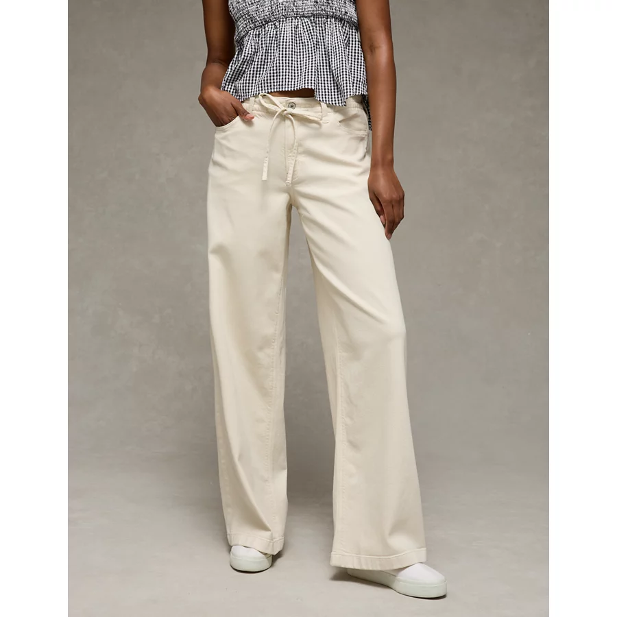 AE Dreamy Drape Stretch Low-Rise Ultra Wide-Leg Pant – Bone Khaki
