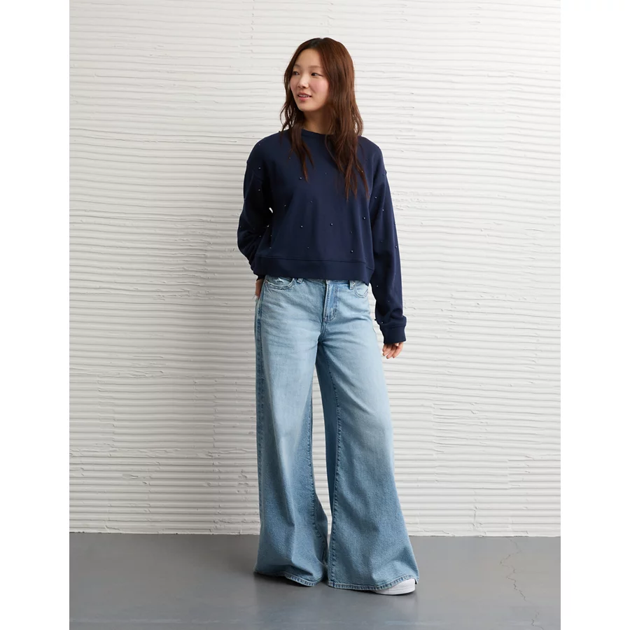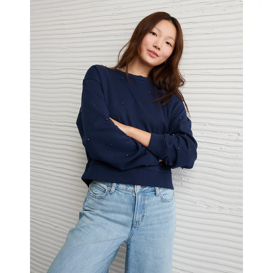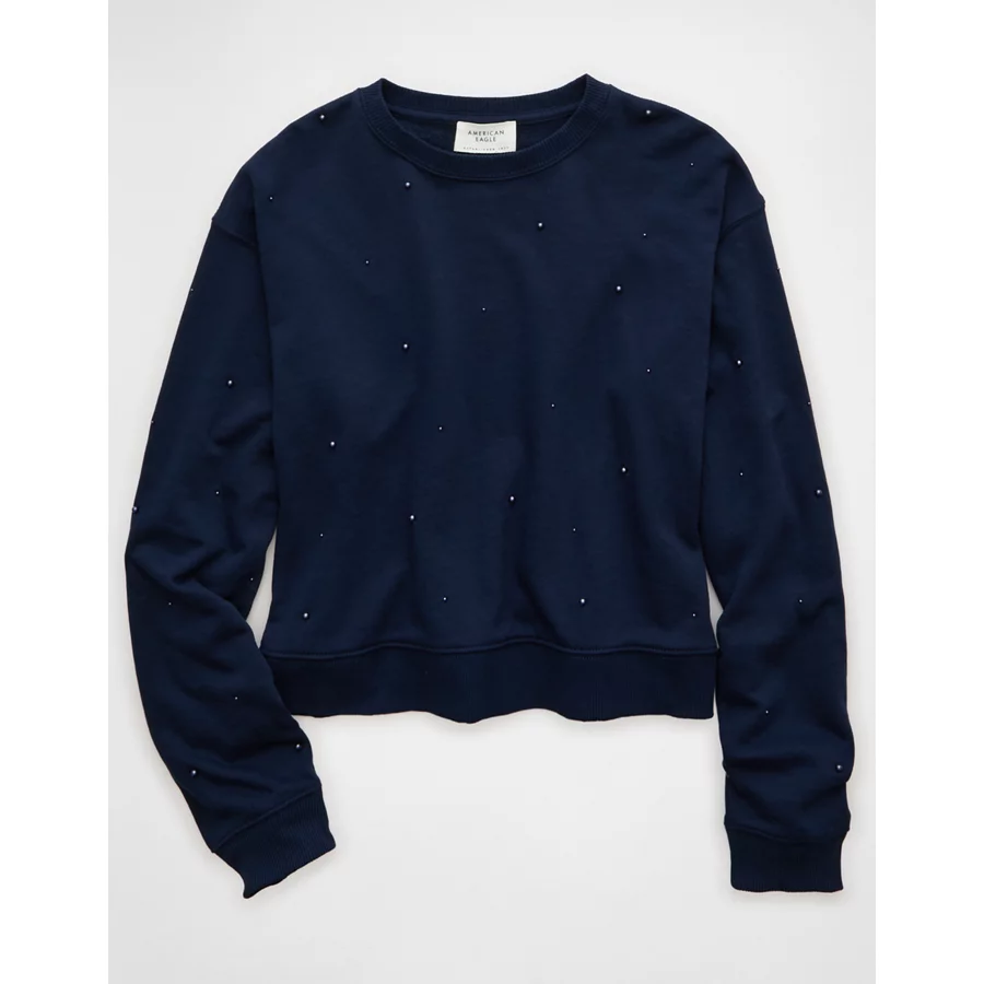 AE Embellished Pearl Sweatshirt – Rich Navy