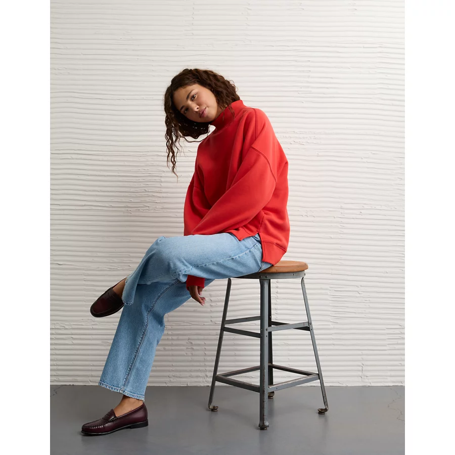 AE Everyday Luxe Mock Neck Sweatshirt – Cherry