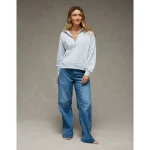 AE Everyday Luxe Quarter Zip Sweatshirt – Light Blue