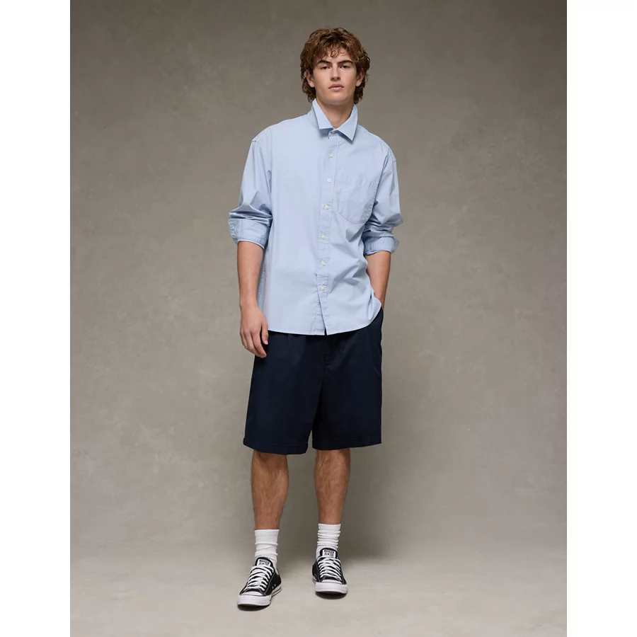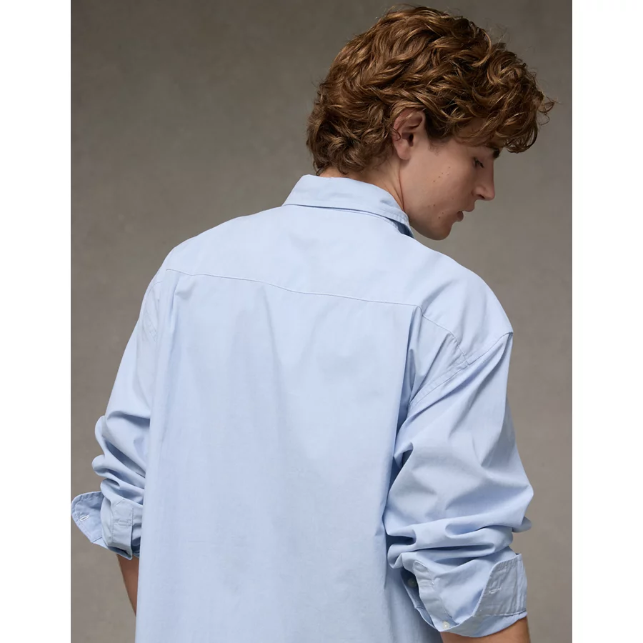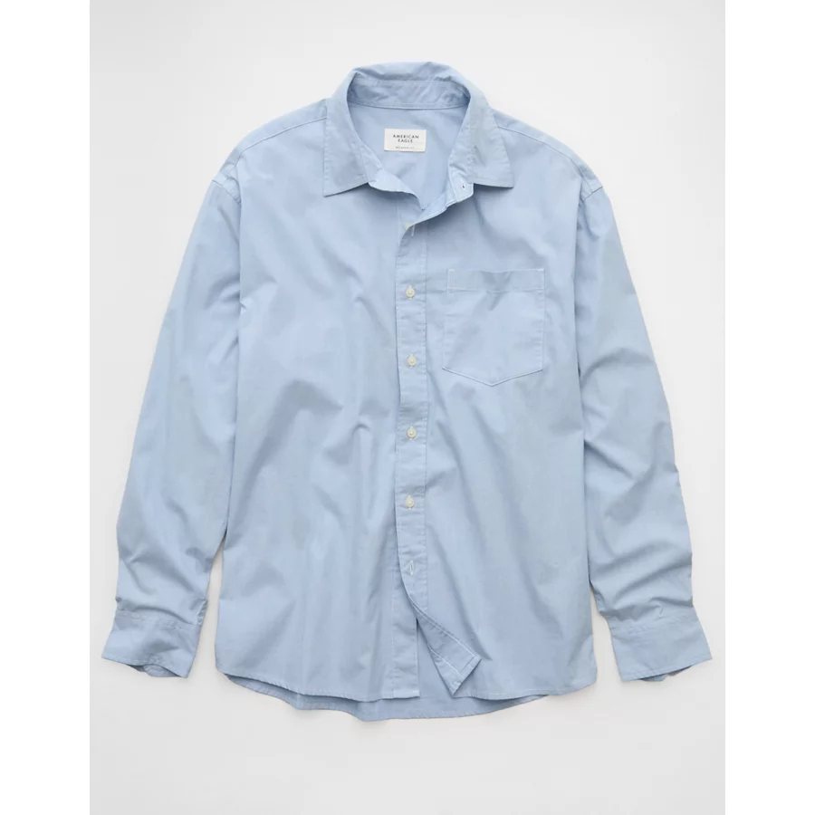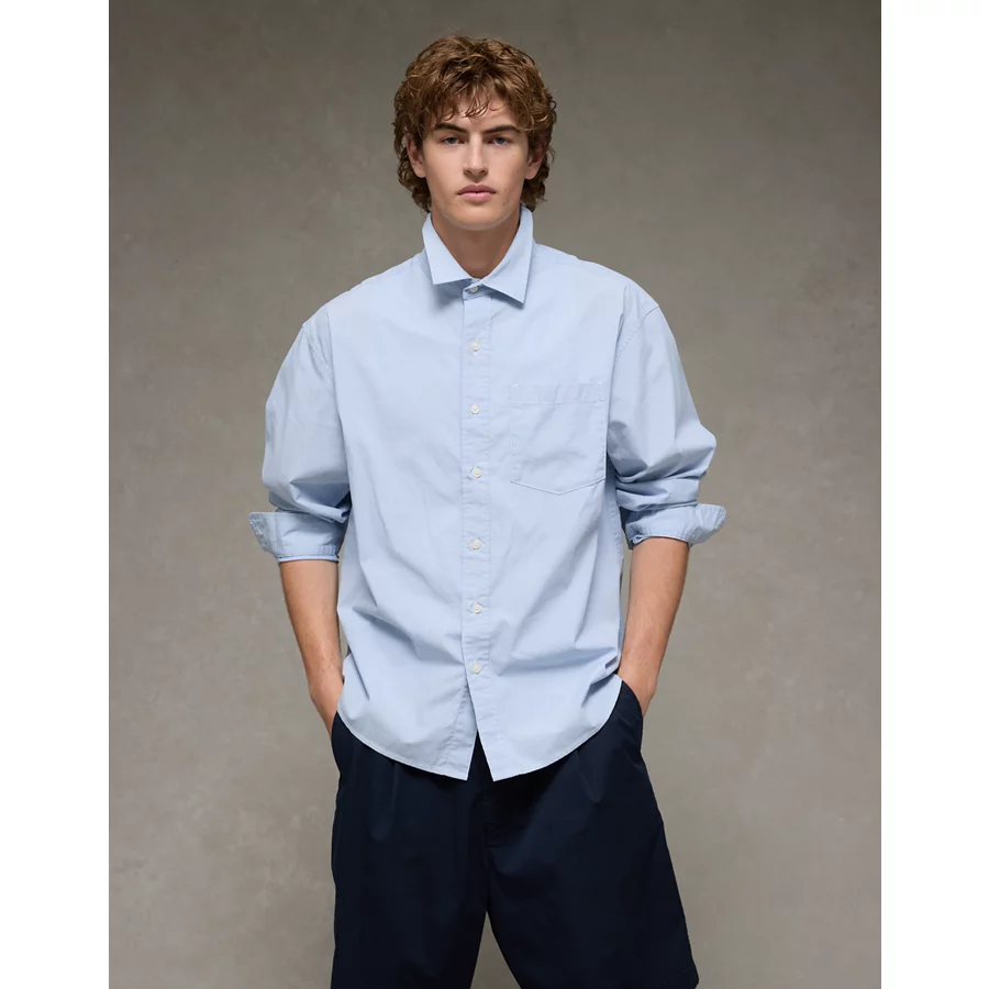 AE Everyday Relaxed Fit Poplin Button-Up Shirt – Blue