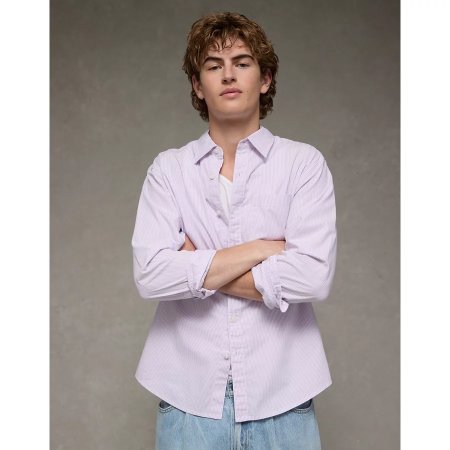AE Everyday Relaxed Fit Poplin Button-Up Shirt – Lilac Ice