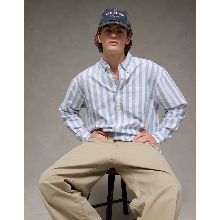 AE Everyday Relaxed Oxford Button-Up Shirt – Light Blue